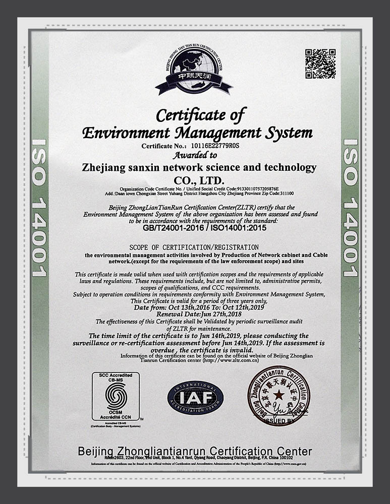 Sanxin ISO 14001 Certificate
