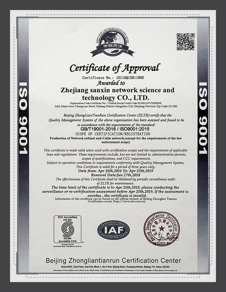 Sanxin ISO 9001 Certificate