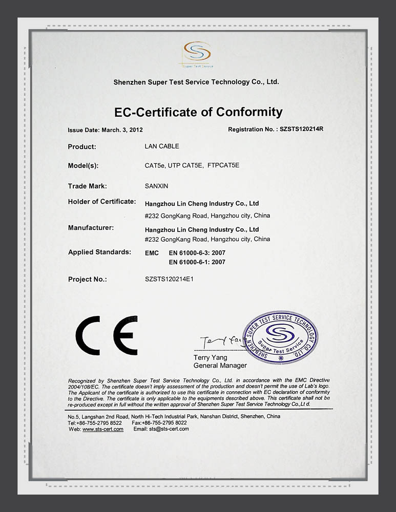 Sanxin CE Certificate