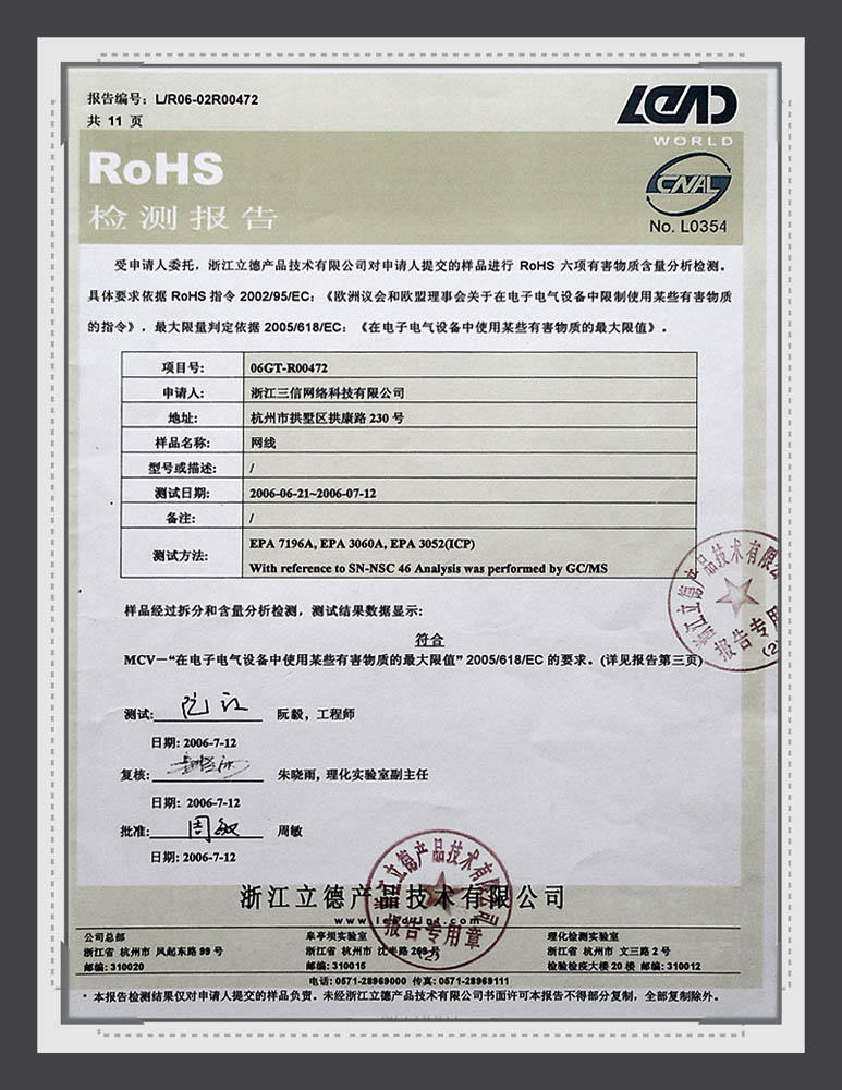 Sanxin RoHS Certificate