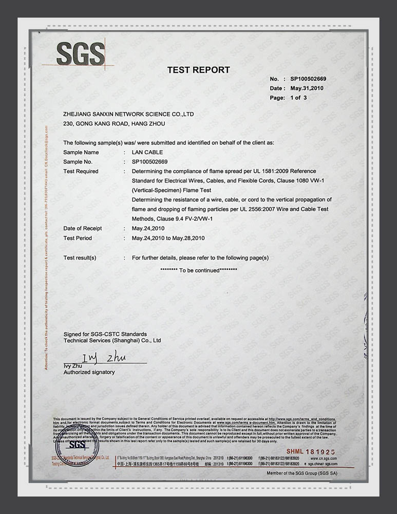 Sanxin UL Certificate